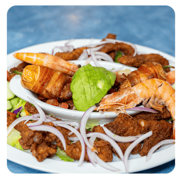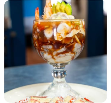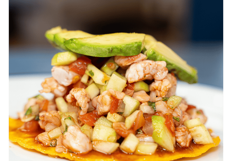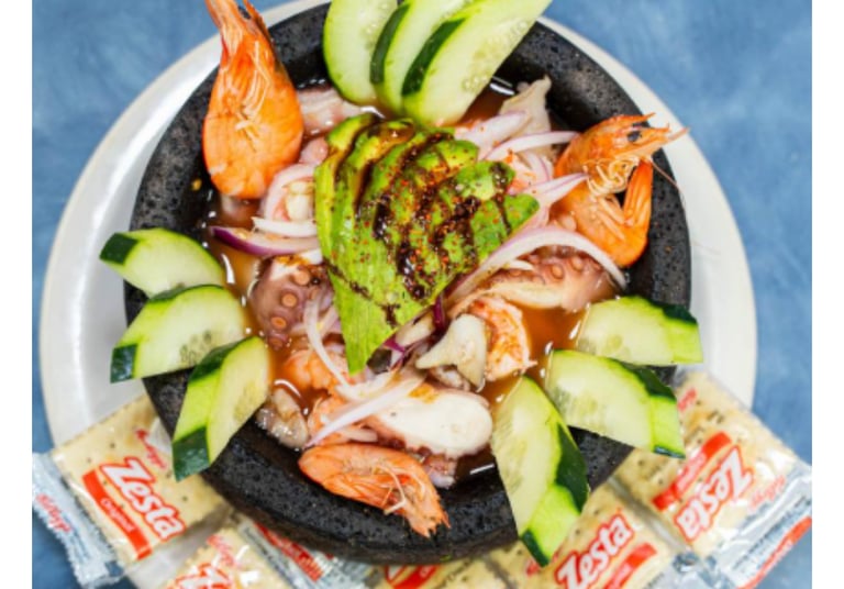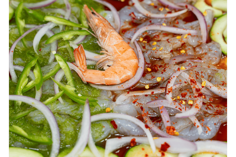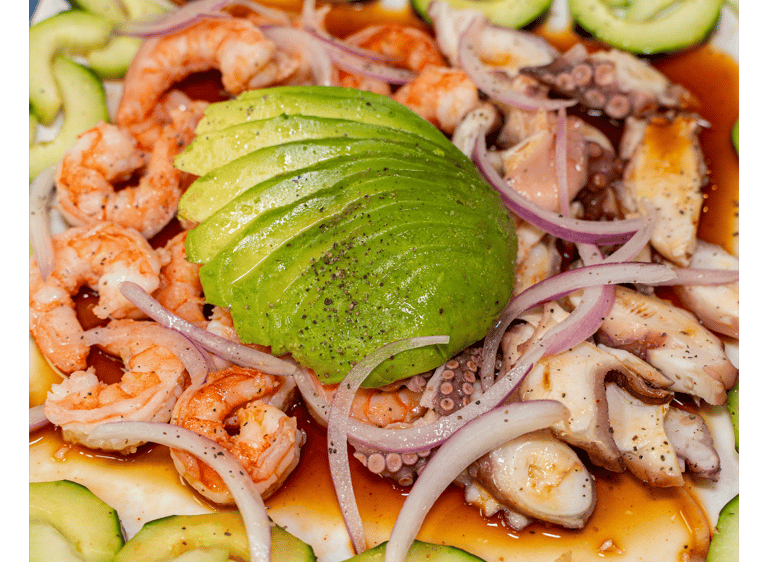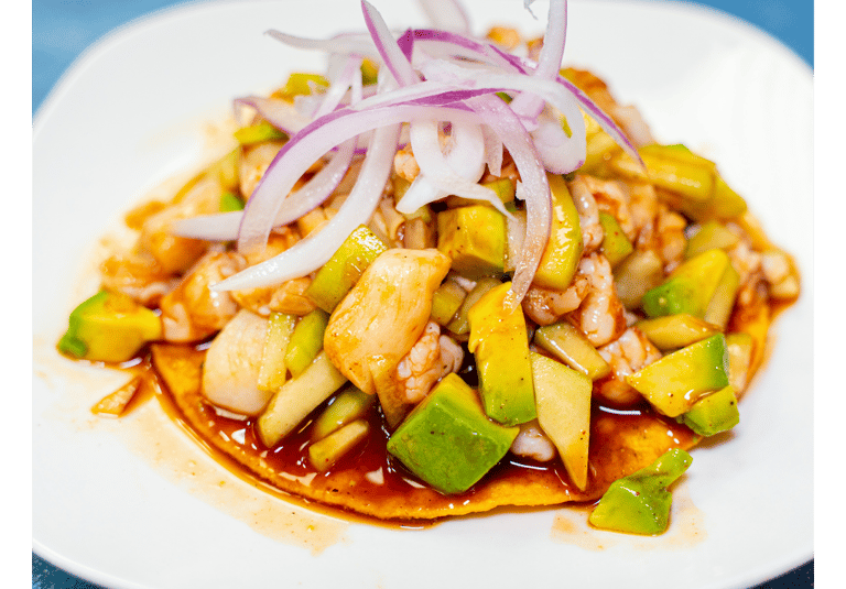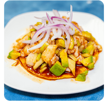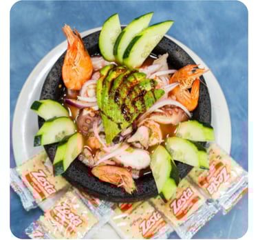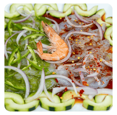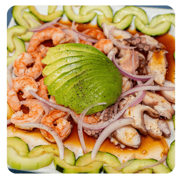 Served with two styles of aguachile sauce, cucumber, onion, and chile.