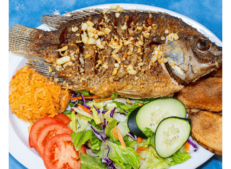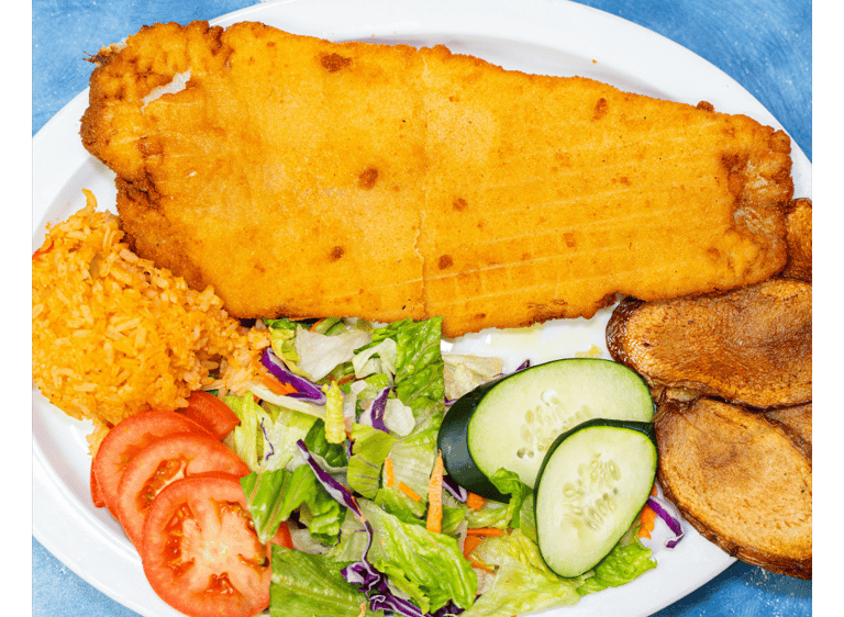 Marinated and fried fish fillet. Served with tortillas, salsa, and tortitos | (Serves 2)